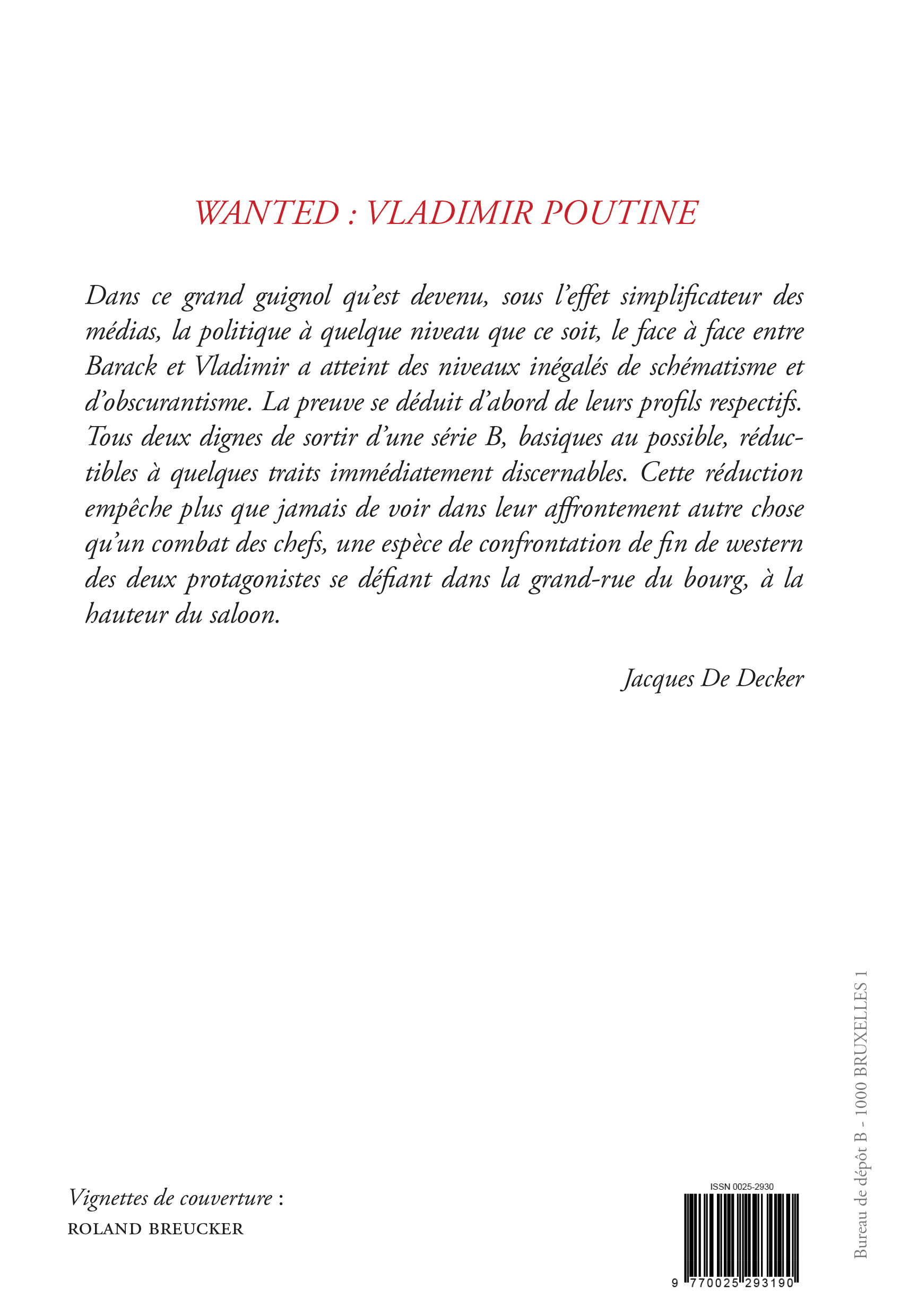 Dans ce grand guignol qu’est devenu, sous l’effet simplificateur des médias, la politique à quelque niveau que ce soit, le face à face entre Barack et Vladimir a atteint des niveaux inégalés de schématisme et d’obscurantisme. Le preuve se déduit d’abord de leurs profils respectifd. Tous deux dignes de sortir d’une série B, basiques au possible, réductibles à quelques traits immédiatement discernables. Cette réduction empêche plus que jamais de voir dans leur affrontement autre chose qu’un combat de chefs, une espèce de confrontation de fin de western des deux protagonistes se défiant dans la grand-rue du bourg, à la hauteur du saloon.