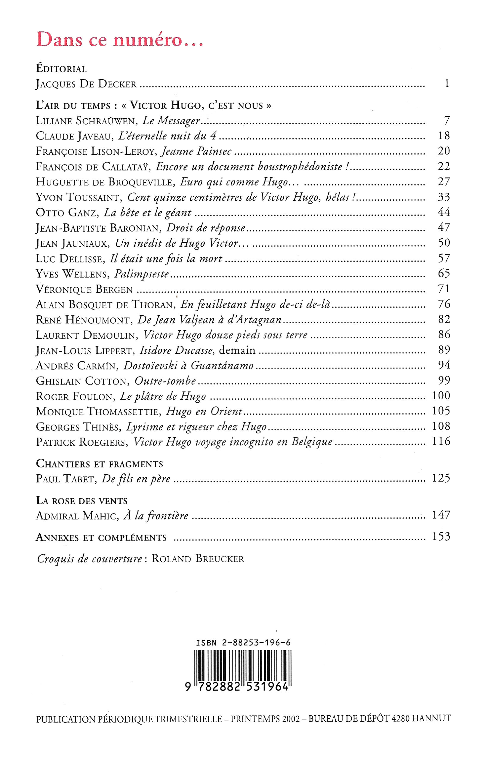 Il est ce « visiteur encombrant », comme dit Jean-Pol Baras à propos de son séjour en Belgique. Mais c’est de son séjour sur la terre que l’on peut tout aussi bien parler. Tout ce qu’il aborde, il le transforme et le transfigure, le chargeant d’une vision qui, peu à peu, s’est mise à animer, à irriguer son œuvre tout entière, dont l’évolution est ascensionnelle. Car lorsque l’on s’efforce de la considérer dans son ensemble, ce qui ne peut se faire que superficiellement, l’on est frappé par la sûreté croissante d’une pensée qui se consolide et se renforce, et va dans le sens d’une conquête par l’homme de son autonomie et de sa dignité. C’est ainsi qu’en 1859 il fait résonner les derniers vers du « Satyre », dans La Légende des Siècles : « Place à l’atome saint, qui brûle et qui ruisselle ! / Place au rayonnement de l’âme universelle ! / Un roi c’est de la guerre, un dieu c’est de la nuit. / Liberté, vie et foi, sur le dogme détruit ! » Et la suite va poursuivre cet appel prodigieux à l’émancipation, qui fait de Hugo, tout baroque et fantasmatique qu’il soit, le prolongement des Lumières.