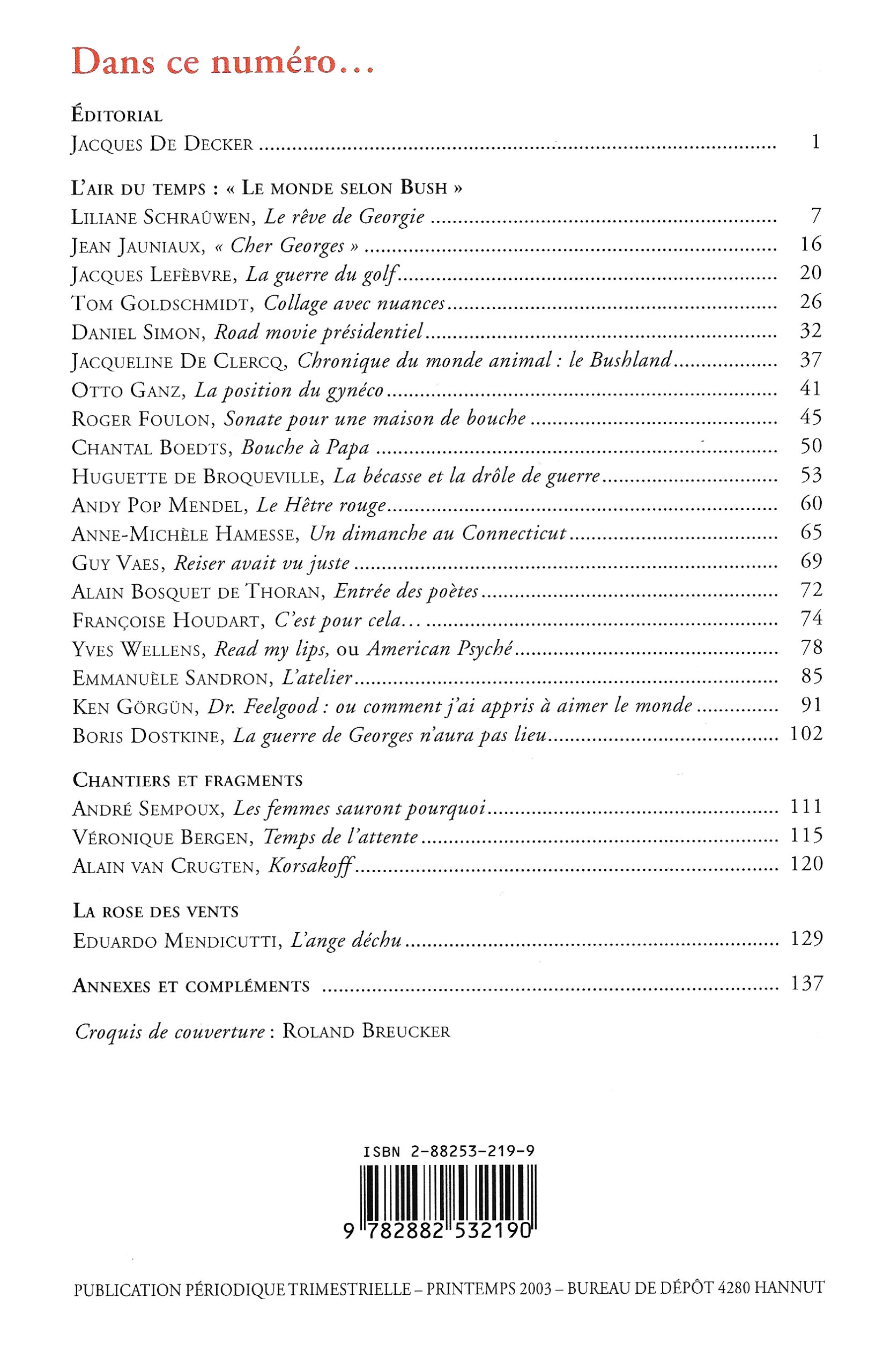 Au temps de l’un de ses prédécesseurs, Richard Nixon, les caricaturistes allaient bon train. Peu de présidents furent autant haïs. Le pauvre homme, qui était loin d’être un petit saint, mais qui avait une certaine stature d’homme d’État, sous le mandat duquel l’homme marcha sur la Lune et l’Amérique se mit à parler avec la Chine connut, avant la destination, toutes les épreuves, et en particulier celle du ridicule. Il fut plus parodié que quiconque, eut droit à un pamphlet dévastateur par un des plus grands écrivains de son temps (le « Tricky Dickie » de Philip Roth) était devenu la tête à claques de son époque. À côté de lui, George W. Bush semble étonnamment épargné. Roth s’est contenté de dire, devant une caméra de télévision, qu’il était un âne. Arthur Miller a déclaré, pince-sans-rire, qu’il lui semblait mal préparé pour le job. Pour reprendre une expression chère à une grande dame du journalisme récemment disparue, il semble que la consigne ait été donnée de ne pas tirer sur une ambulance.